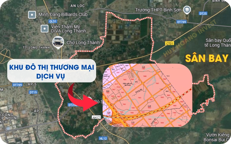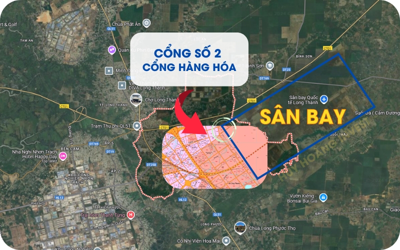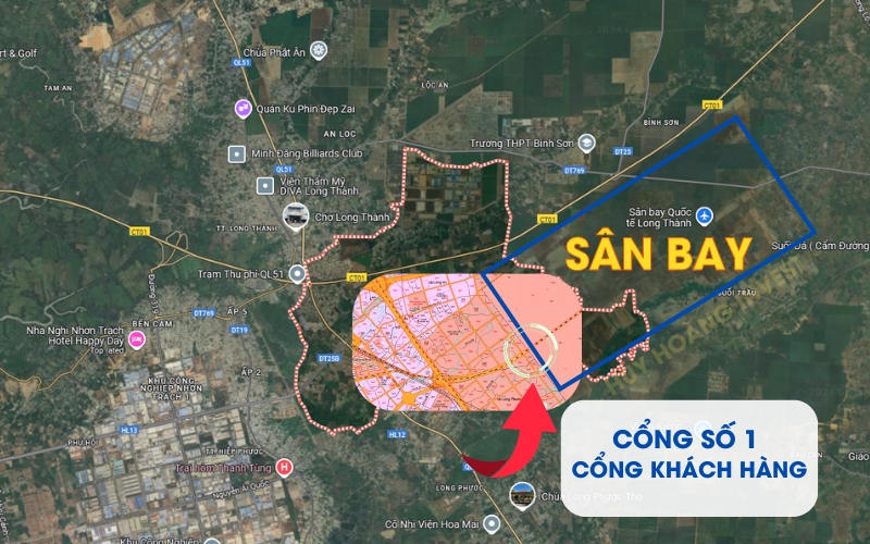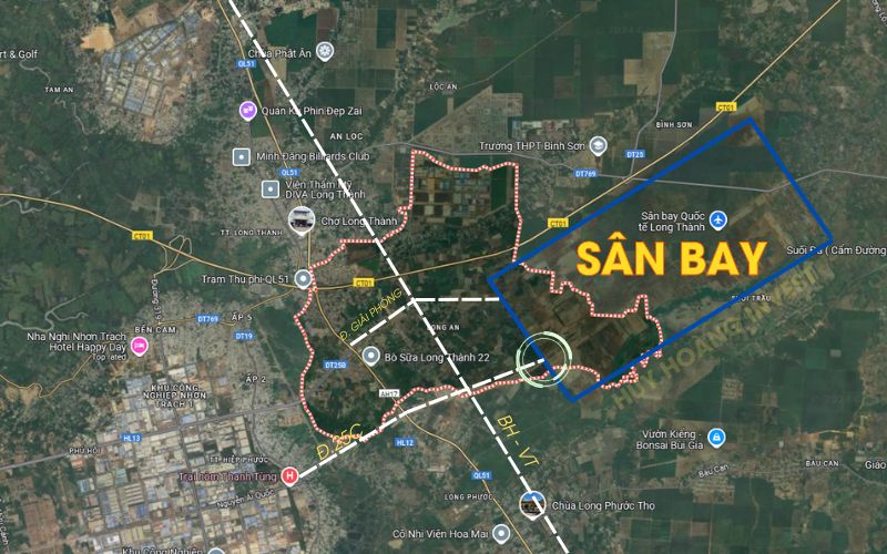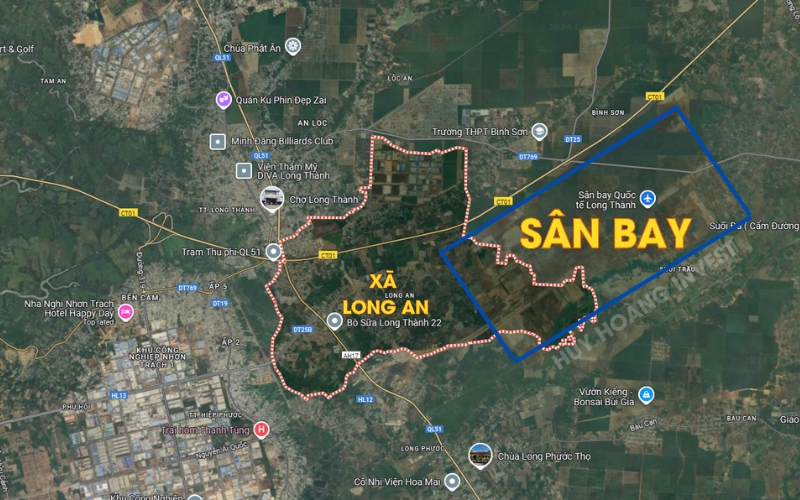 - Vị trí địa lý của Xã Long An trên Google Map so với Sân Bay Quốc Tế Long Thành