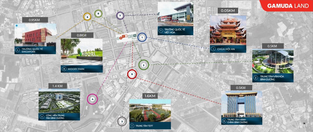 - Artisan Park được quy hoạch và xây dựng trên khuôn viên khu đất 3 mặt tiền đường tại trung tâm hành chính tỉnh Bình Dương